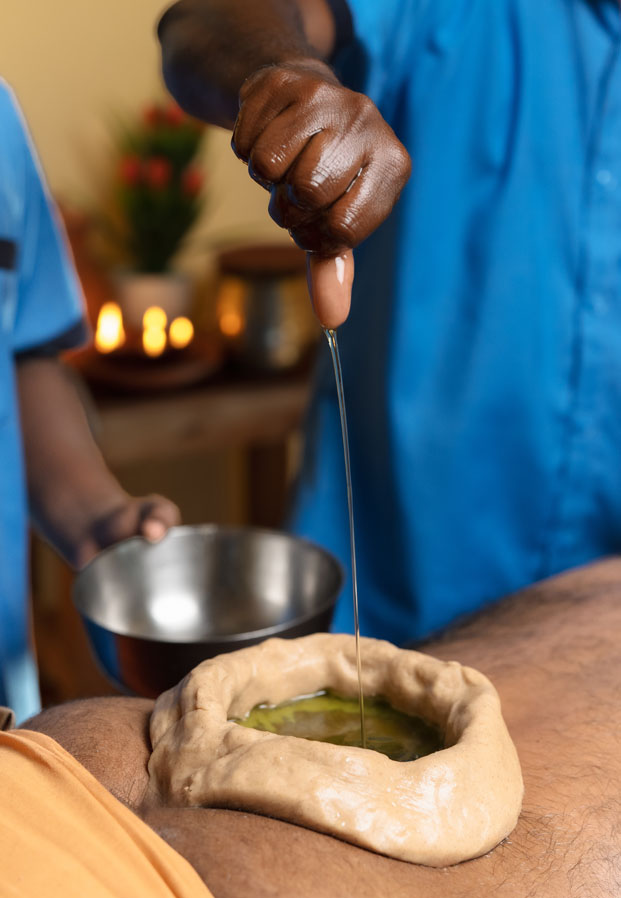 The word Kathi refers to lower and Vasthi means to retain. Kativasthi is a popular ayurvedic treatment in which specially prepared warm medicated oil is retained over low back area within a boundary made out of black gram power. It is done for a period of 45 minutes. The oil is changed at regular intervals to maintain its warmth. Later a gentle massage is given in the area. The warmth and the healing properties of the medicinal oils are made used in this process. It is effective in treating lower back pain and is beneficial in conditions like osteoporosis and rheumatic arthritis. The treatment reduces pain and inflammation, relieves rigidity of muscles, nourishes and strengthens bones ligaments and connective tissues in the lumbosacral region.